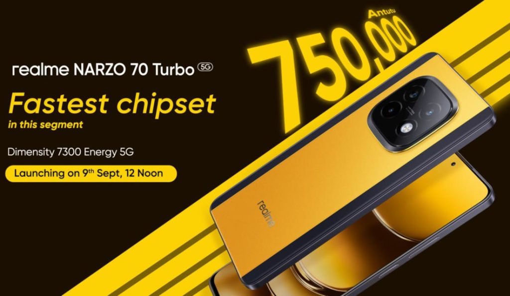 أكدت شركة Realme إطلاق الهاتف الذكي Realme NARZO 70 Turbo 5G في الهند في 9 سبتمبر.